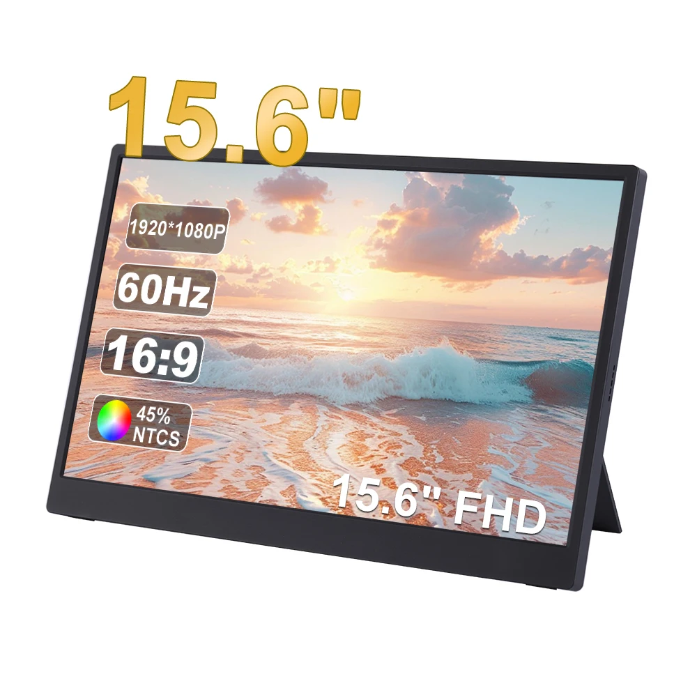 15.6″ Portable Monitor 1920×1080 16:9 FHD HDMI-compatible Extend LCD Display For PC Xbox Switch PS4/5 Macbook With Metal Bracket
