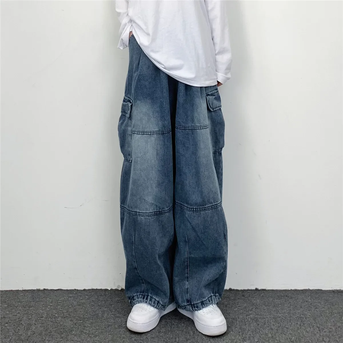 2023 New Trendy Hip Hop Wide Leg Cargo Pants Straight Leg Loose Fit Jeans For Men Women Ins Style Four Seasons Fashion