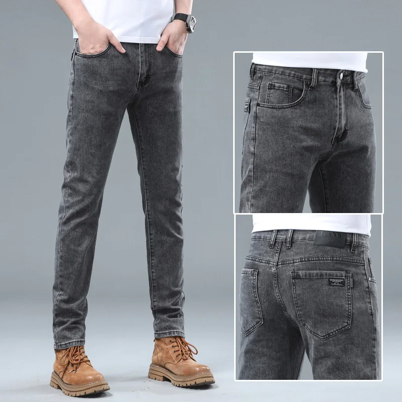 2024 New Classic Slim Korea Fashion Solid Color Simple Male Straight Skinny Denim Trousers Black Gray Men’s Stretch Jeans