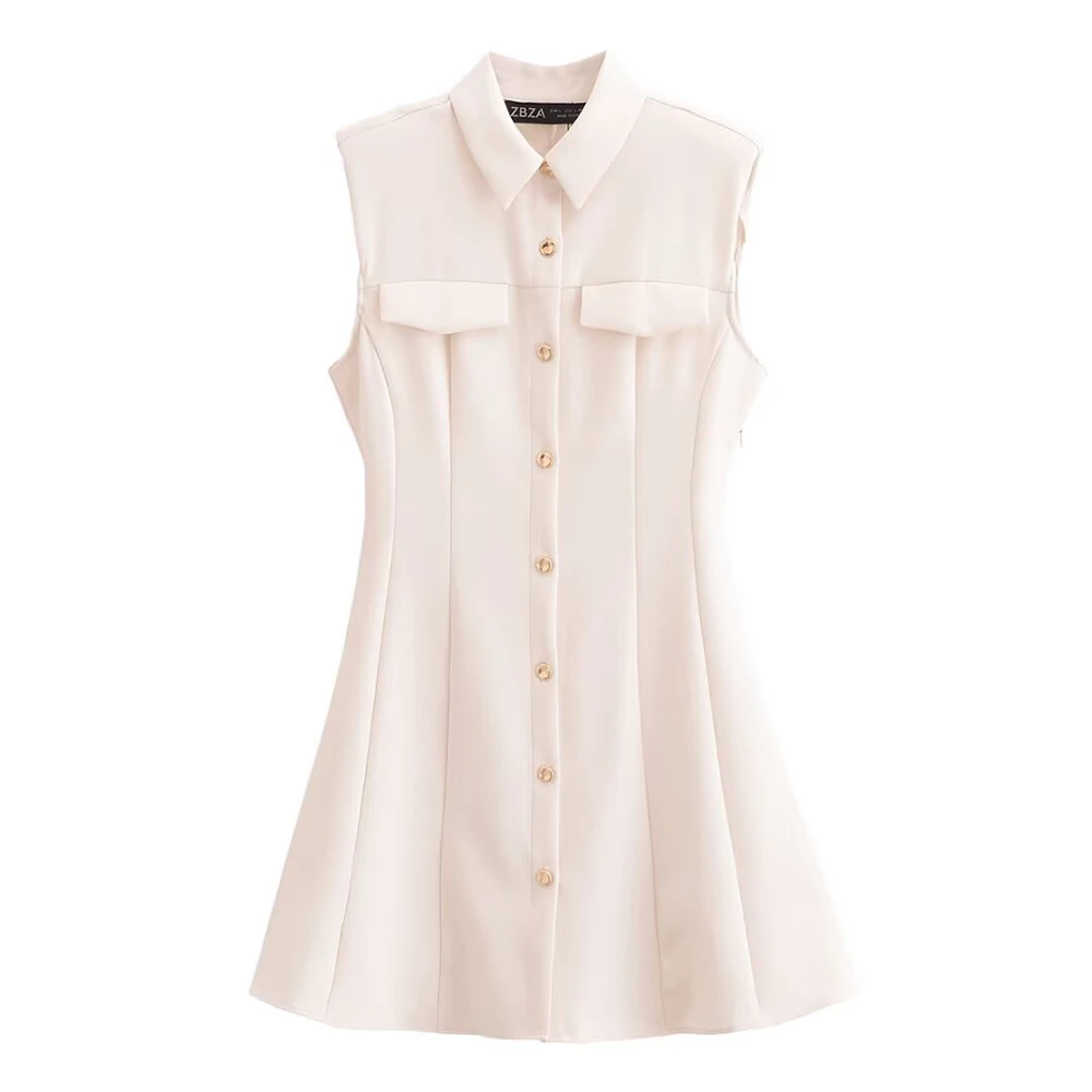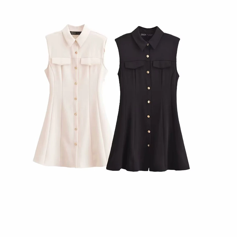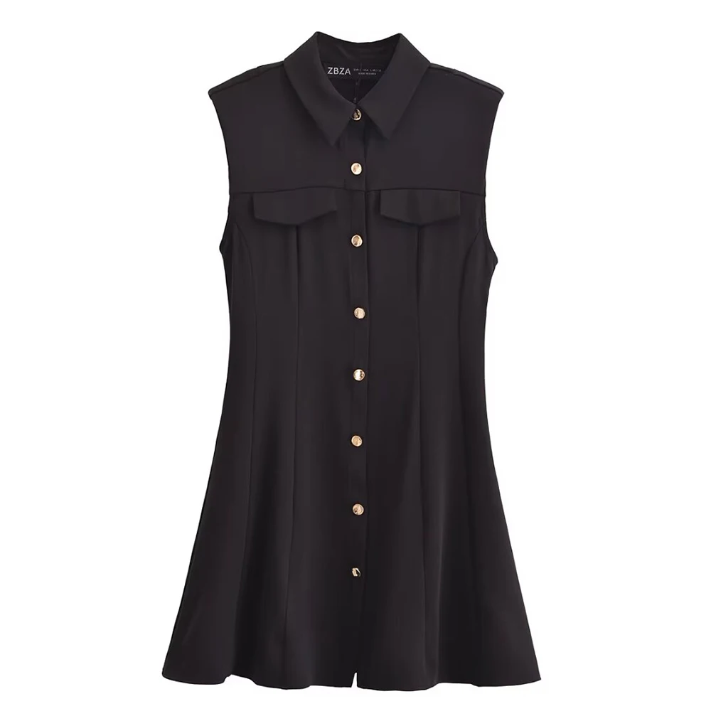 2025 new women’s clothing fashionable temperament casual buckle decoration waist cinched sleeveless lapel dress