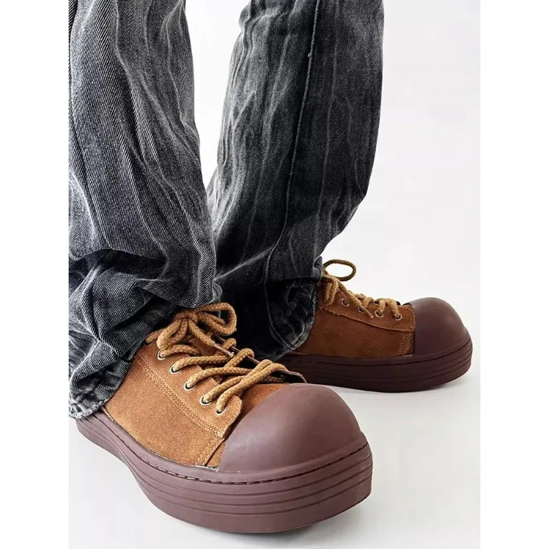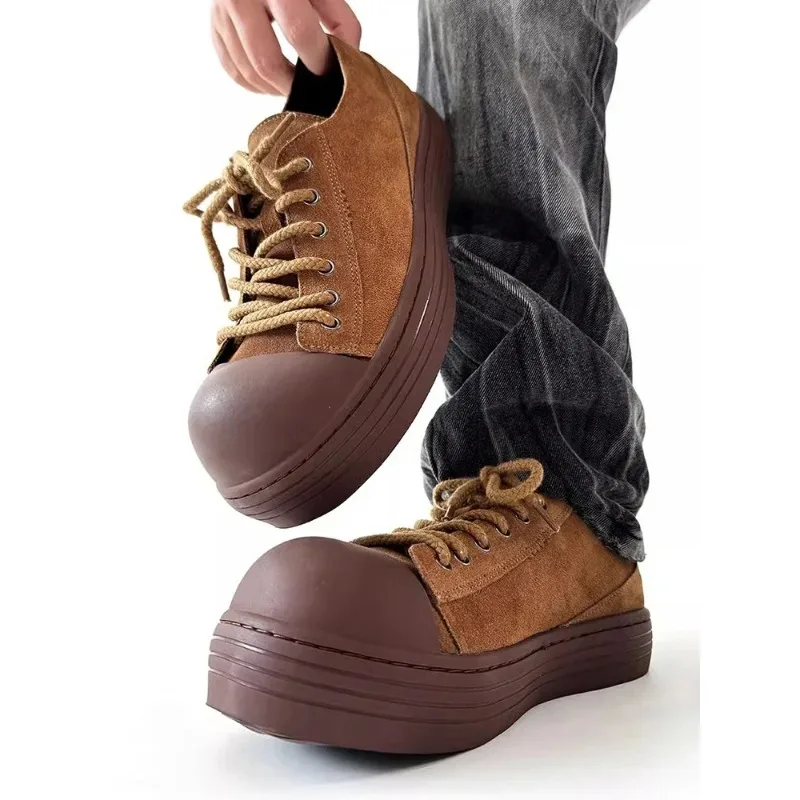 2025 Retro luxury brand Man sneaker Genuine leather suede Big Head Sneakers Men’s Shoes Oversized size 46 High Street ugly shoes
