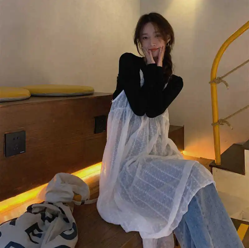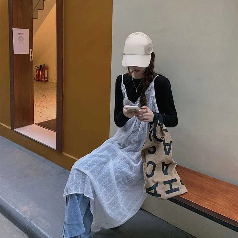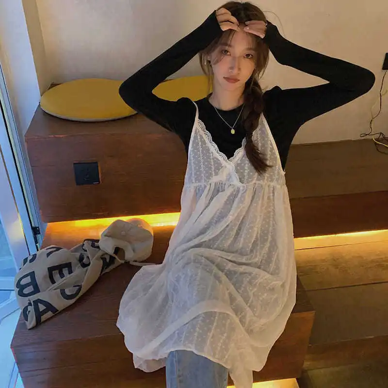 2025 Summer New White Vest Dresses Sweet Lace Mid Length Loose Vestidos Mujer Y2k Aesthetics Sleeveless Dress for Women
