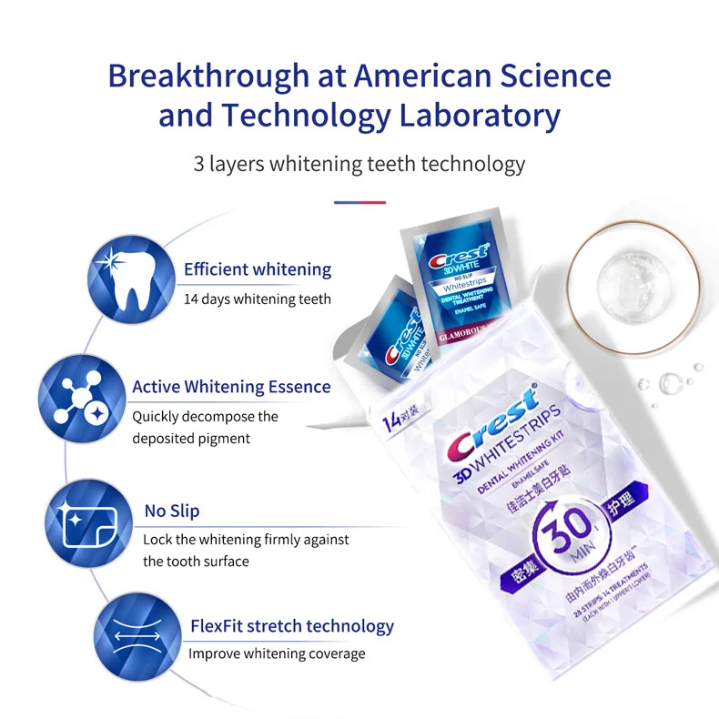 3D White White Strips Glamorous White 7/10 Pouch Treatment Teeth Whitening Kit Enamel Safe No Slip Strips 14 Days Visibly Whiter