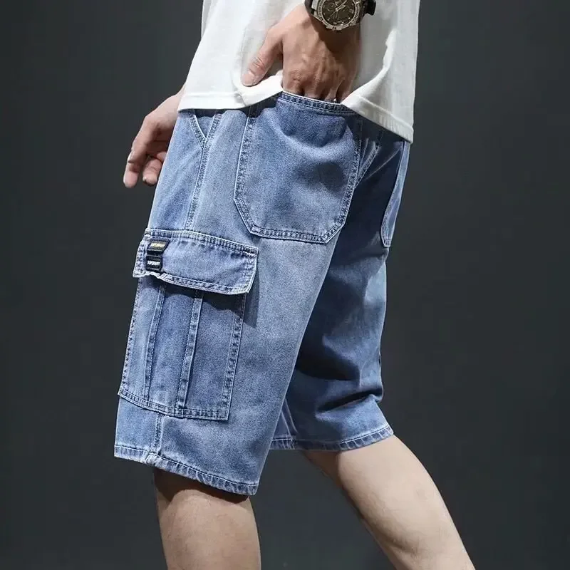 Casual Loose Fit Denim Shorts Men’s Straight Leg Pocketed Mid Waist Summer Workwear Five Minute Pants Trendy Sportswear
