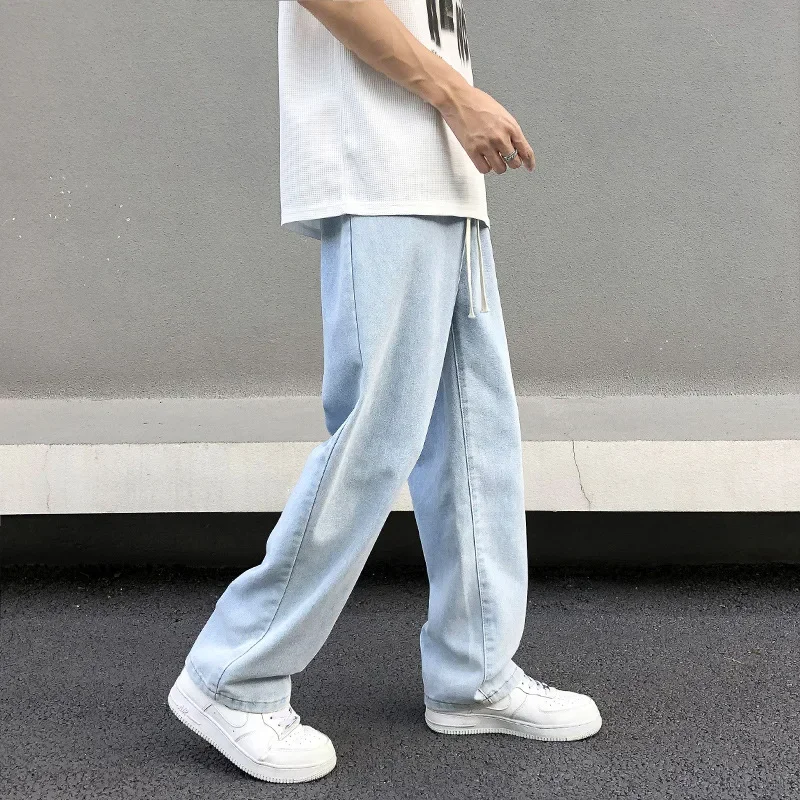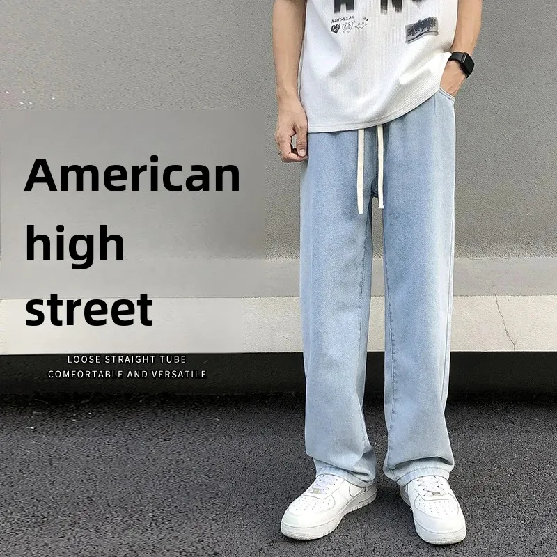 Casual Straight-Leg Jeans Men’s Spring New Loose-Fit Elastic Waist American Style Wide-Leg Trousers New Arrival High Street Fash