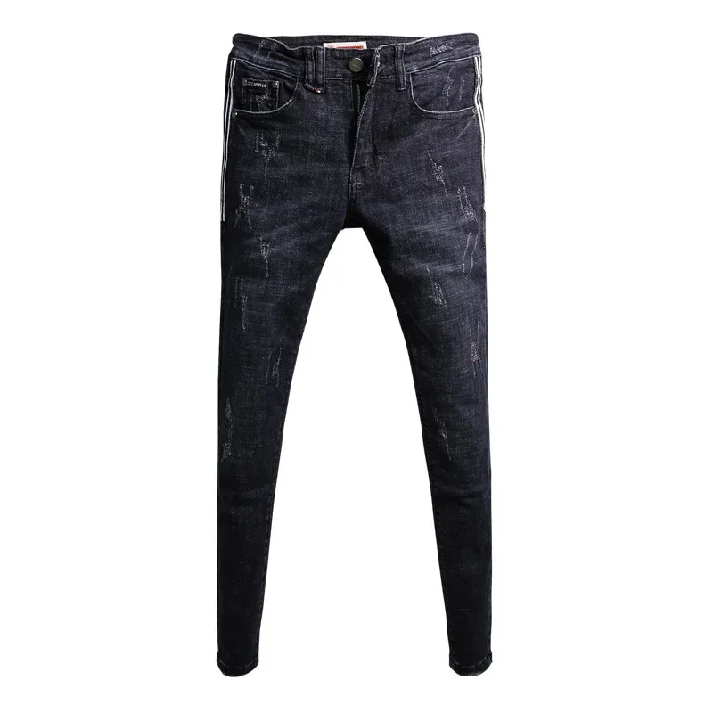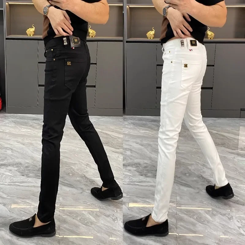 Elastic Straight Leg Jeans Men’s Fashion Simple Style Versatile White Slim Fit Business Casual Trousers for Men