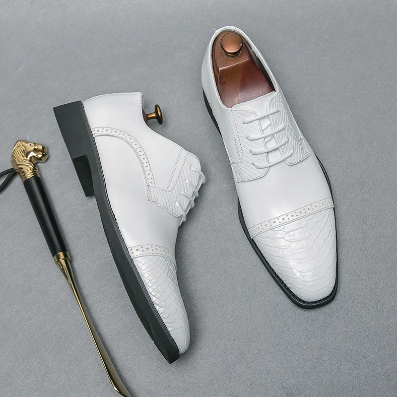 Golden Sapling Wedding Shoes for Men Fashion White Leather Oxfords Men’s Formal Shoes Casual Business Flats Dress Party Footwear
