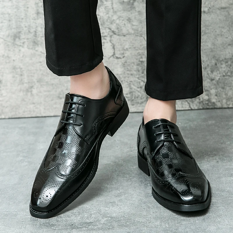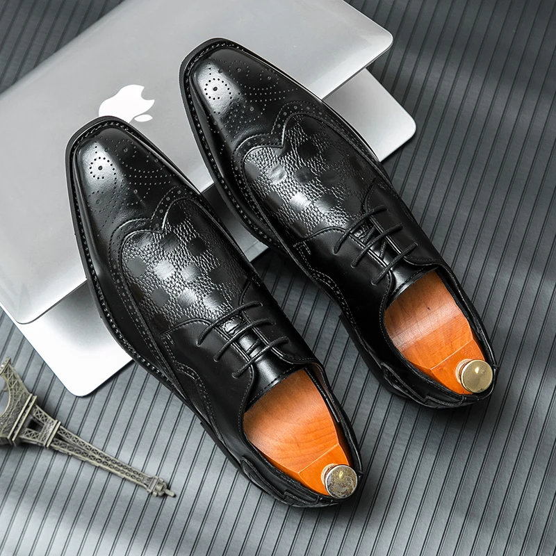 High End Brand Interview Office Business Shoes British Style Blue Brogue Shoes Massage Soles Men’s Wedding Square Toe Shoes