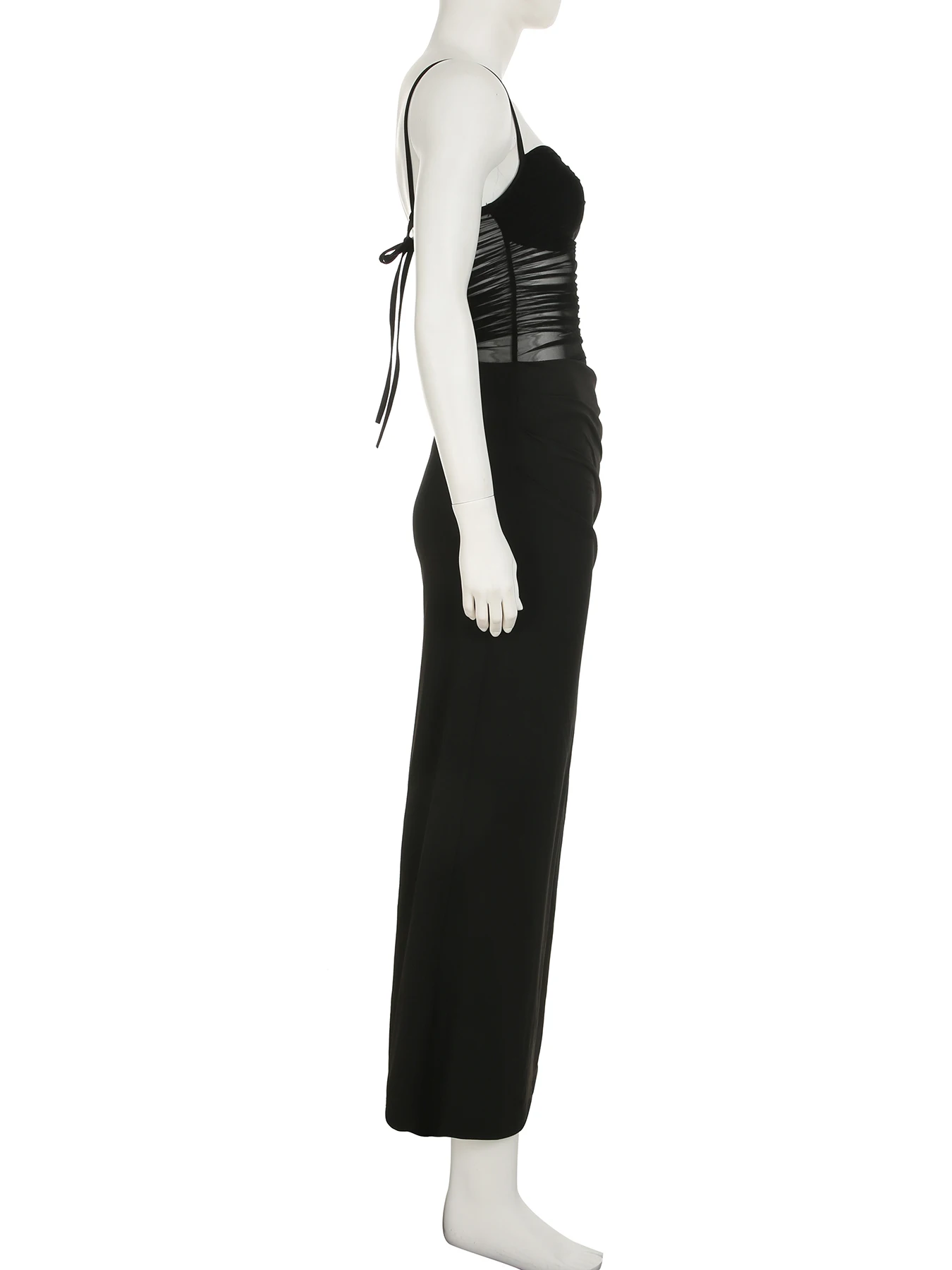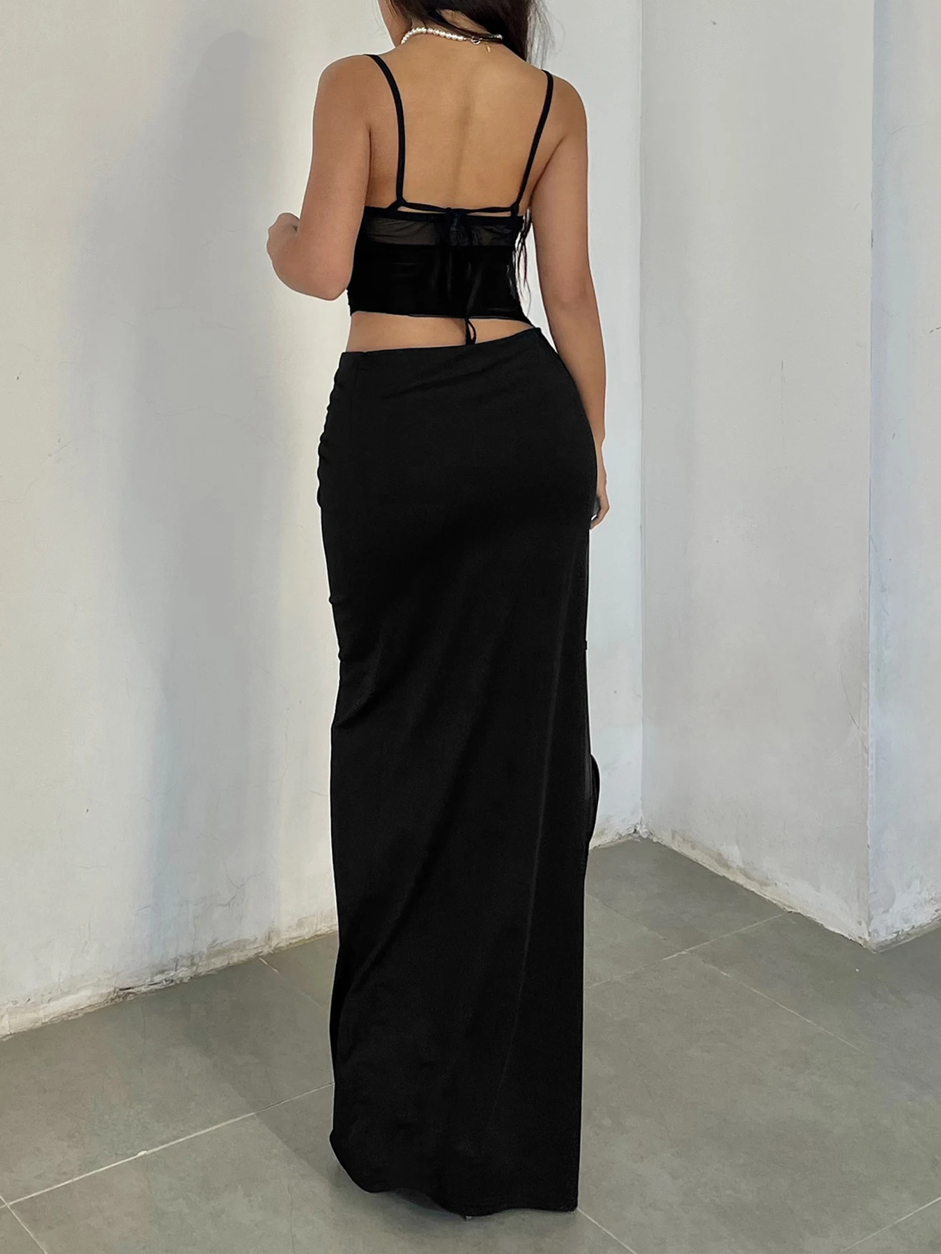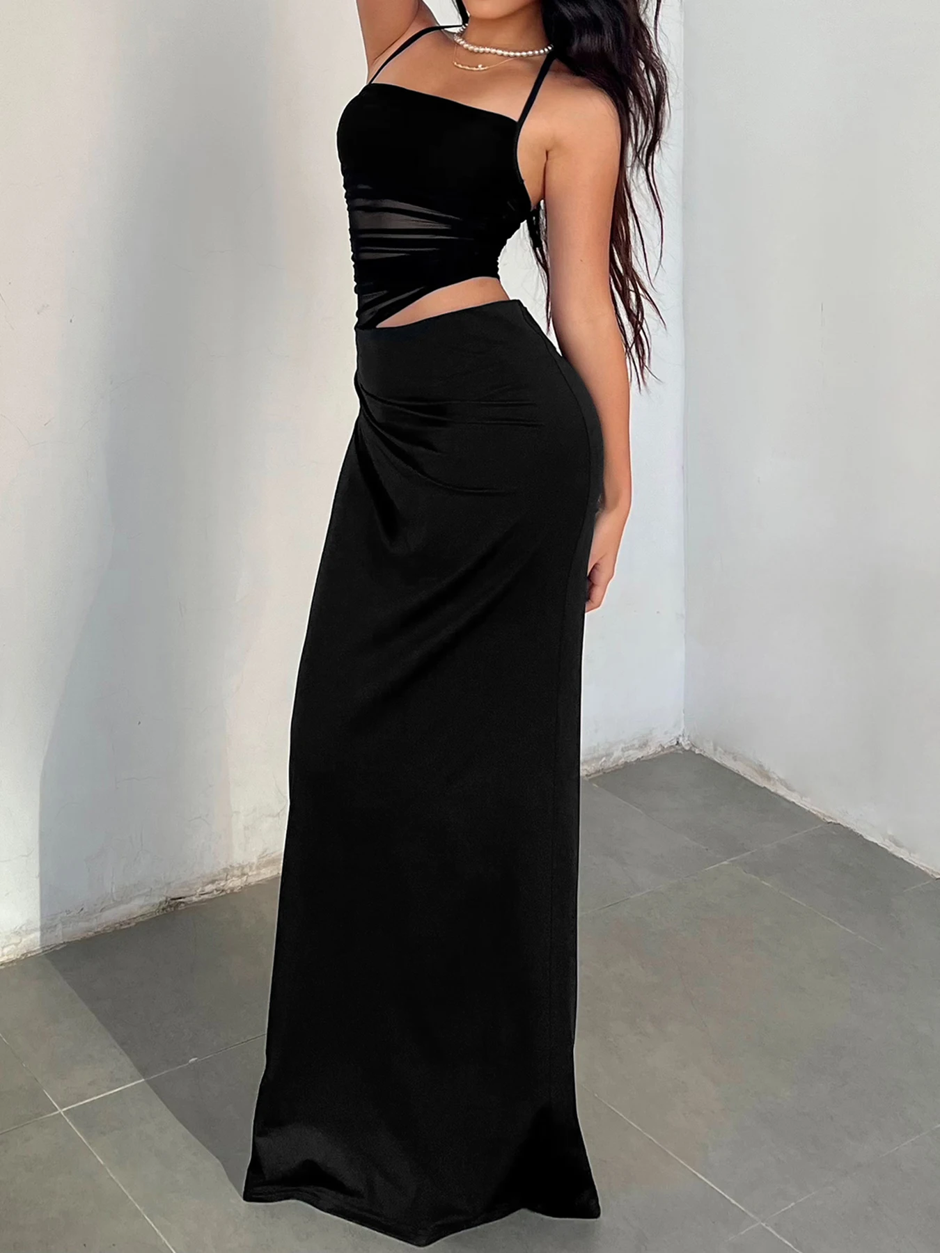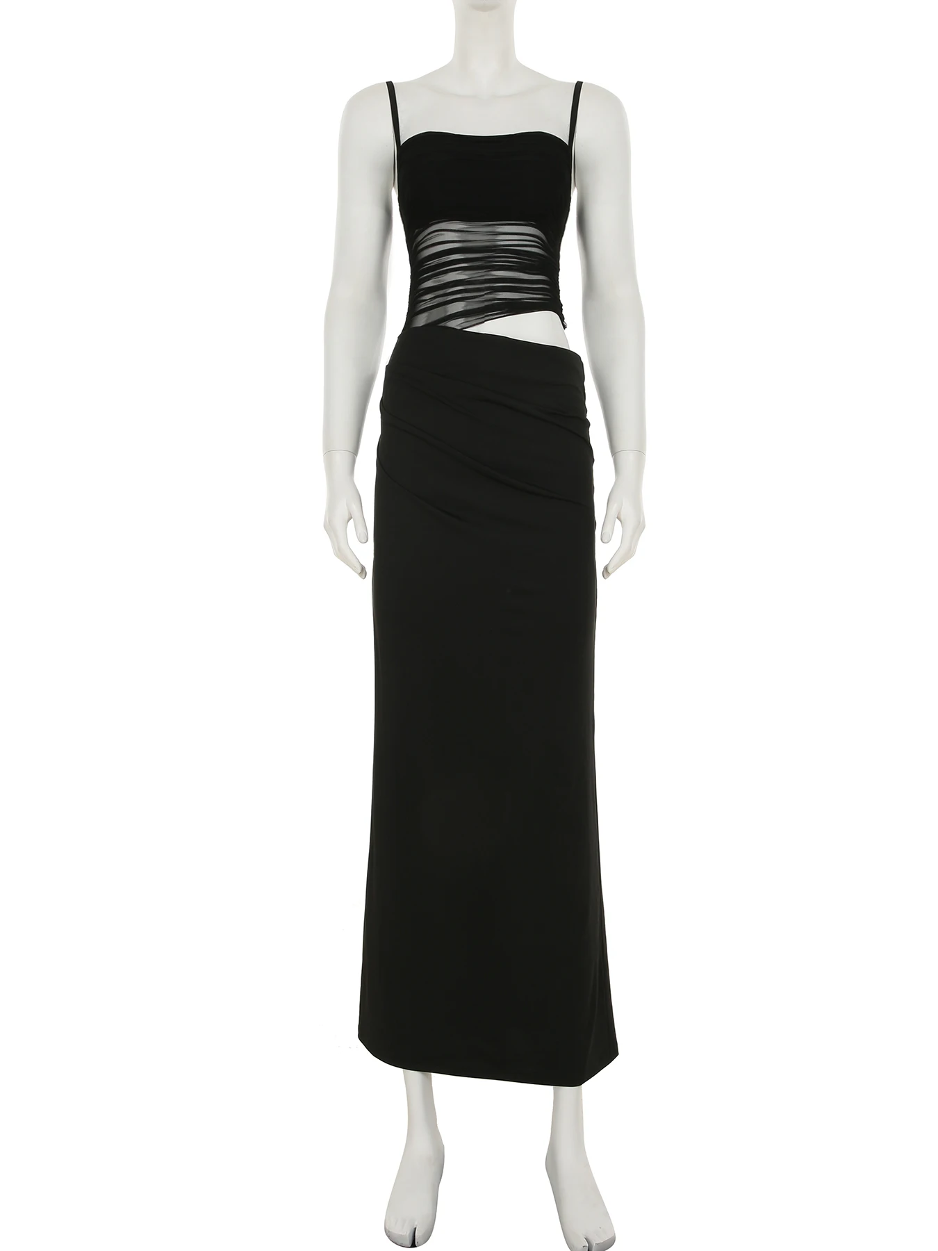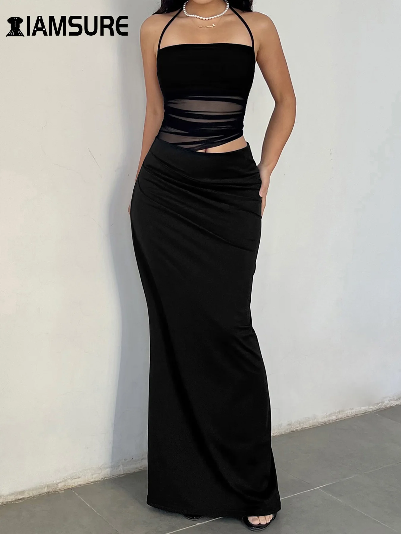 IAMSURE Holiday Sexy Slim Hollow Out Bodycon Dress Beach Style Patchwork Mesh Maxi Dresses For Women 2025 Summer Fashion Lady