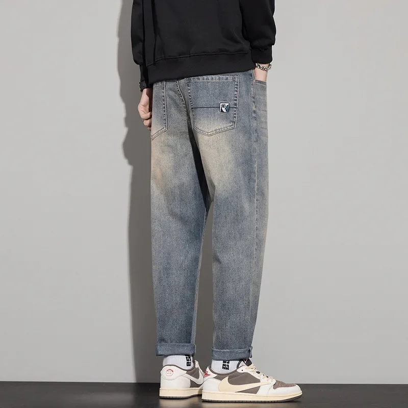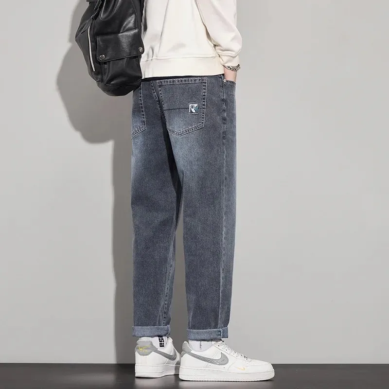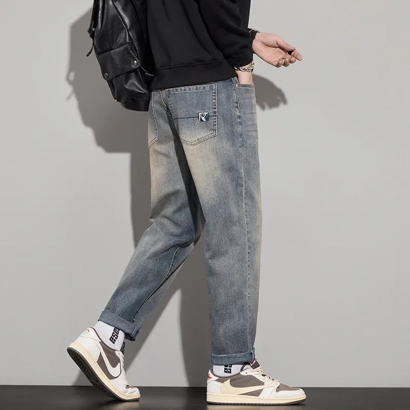 Loose Fit Men’s High Street Denim Jeans Tapered Elastic Casual Long Pants Autumn Winter New Style Trendy Brand American Style