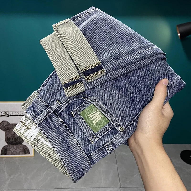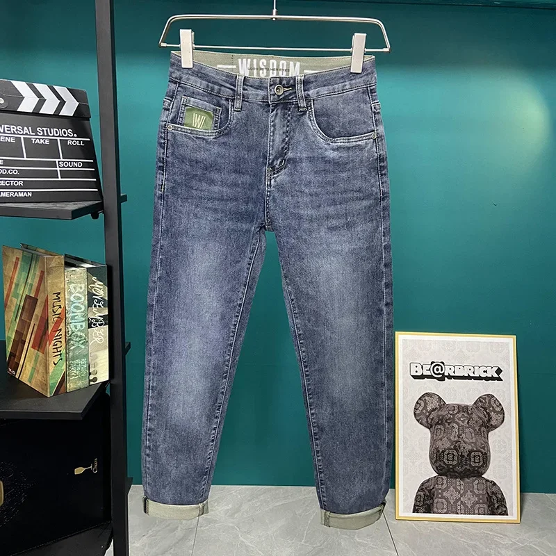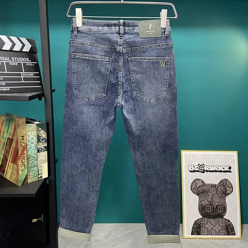 Luxury Embroidered Jeans For Men Casual Slim Fit Soft Versatile Denim Trousers High End Summer 2023 Thin Cut Small Foot
