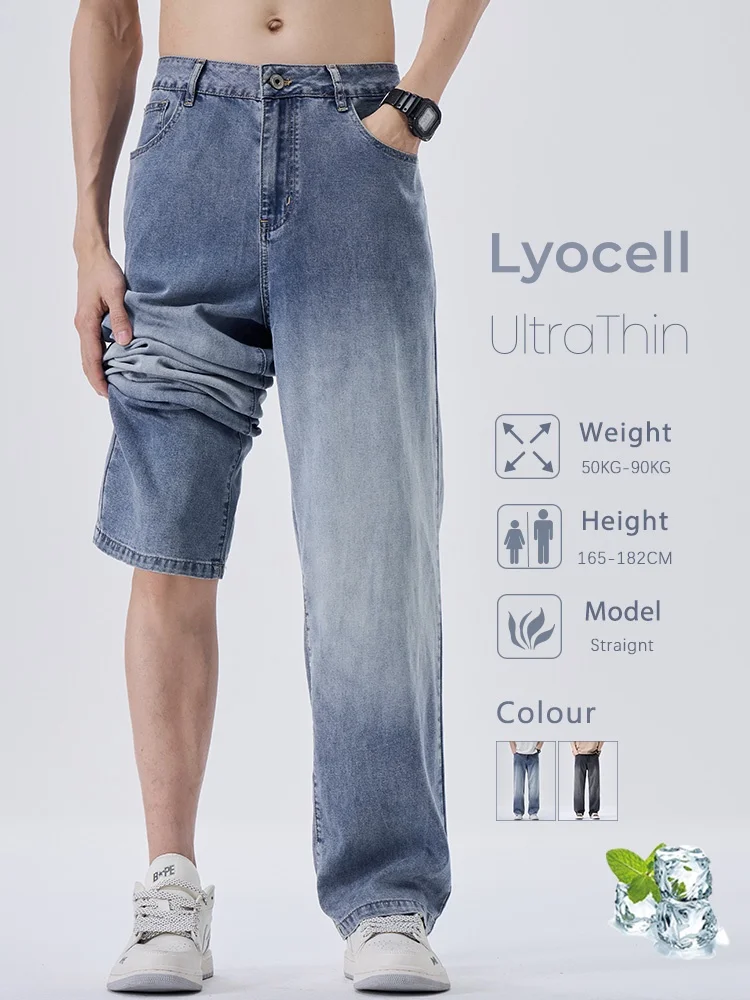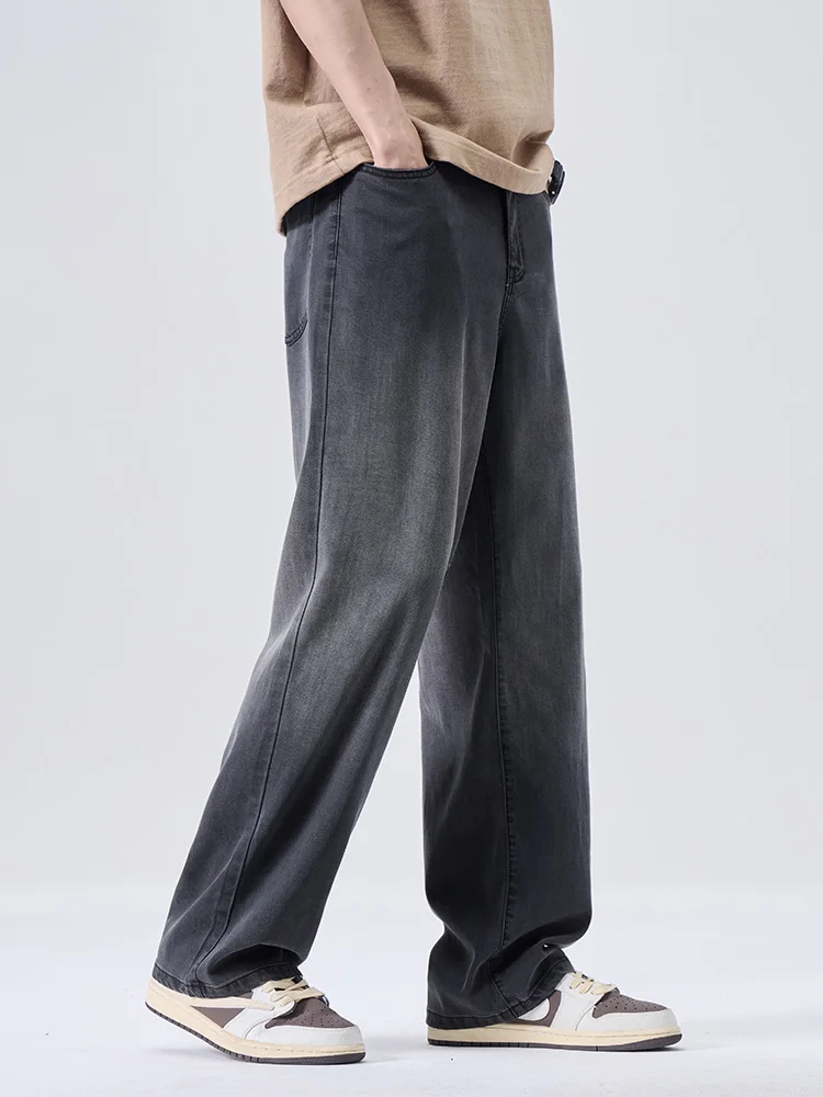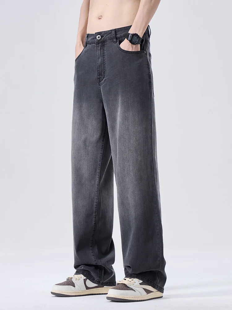 Men’s Wide-leg Pants Baggy Jeans Lyocell Spring Summer Thin Straight Fashion Gradient Denim Trousers Streetwear Male Clothing