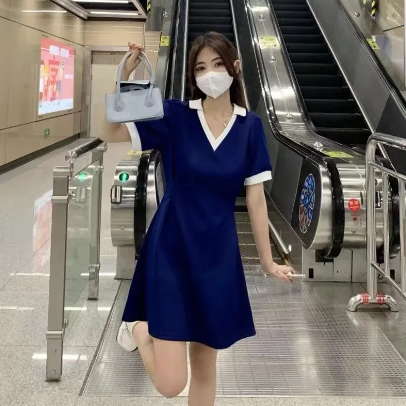 Plus Size 2025 New Spring Summer Polo Dress For Plus Size Women Slimming French Niche Design Clothing With Belly Covering