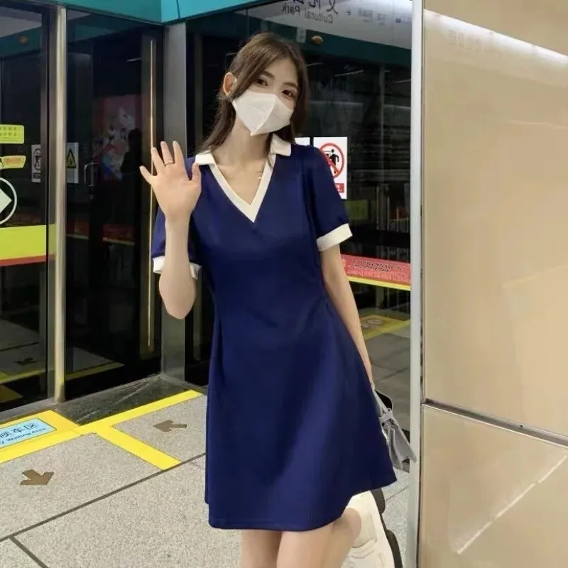 Plus Size 2025 New Spring Summer Polo Dress For Plus Size Women Slimming French Niche Design Clothing With Belly Covering