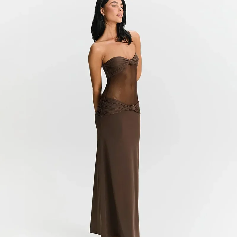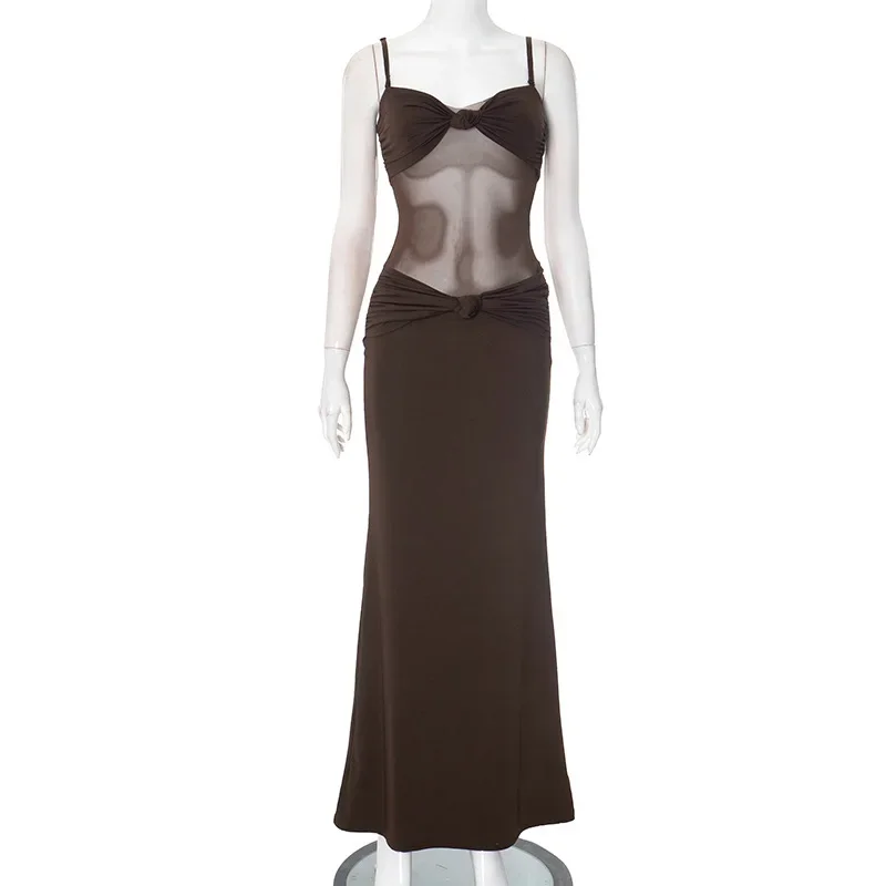 See Through Mesh Sexy Y2K Maxi Dress Party Club Outfits Women Summer Strapless Backless Bodycon Beach Holiday Dresses Sundress