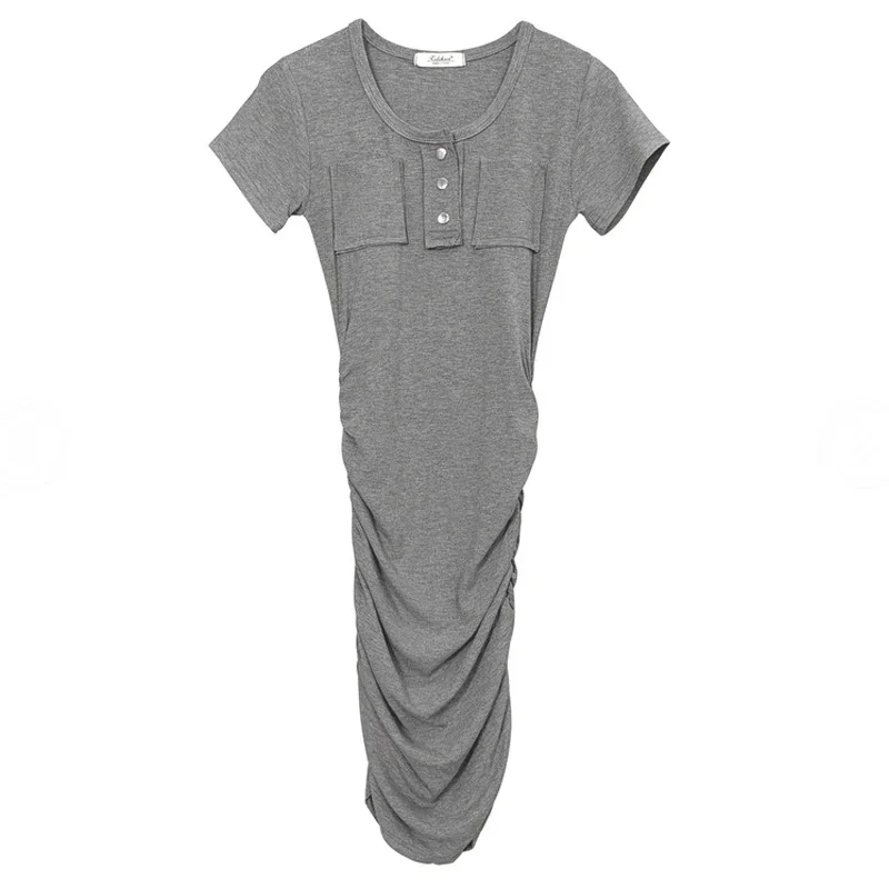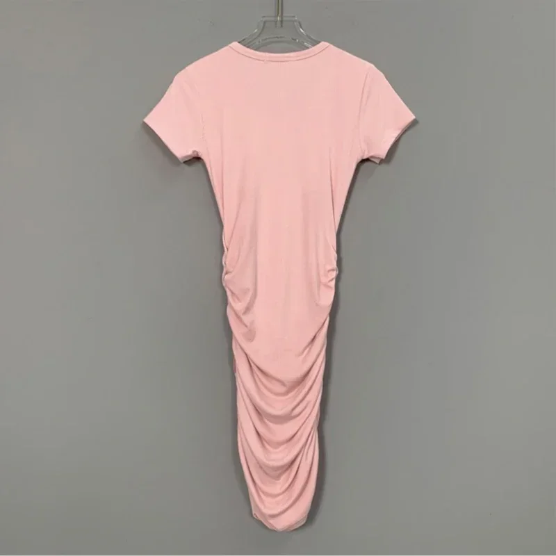Short Sleeve Ruched Bodycon Dress Women Button V Neck Bandage Mini Dresses Summer Black Skinny Stretchy Party Vestidos 2025