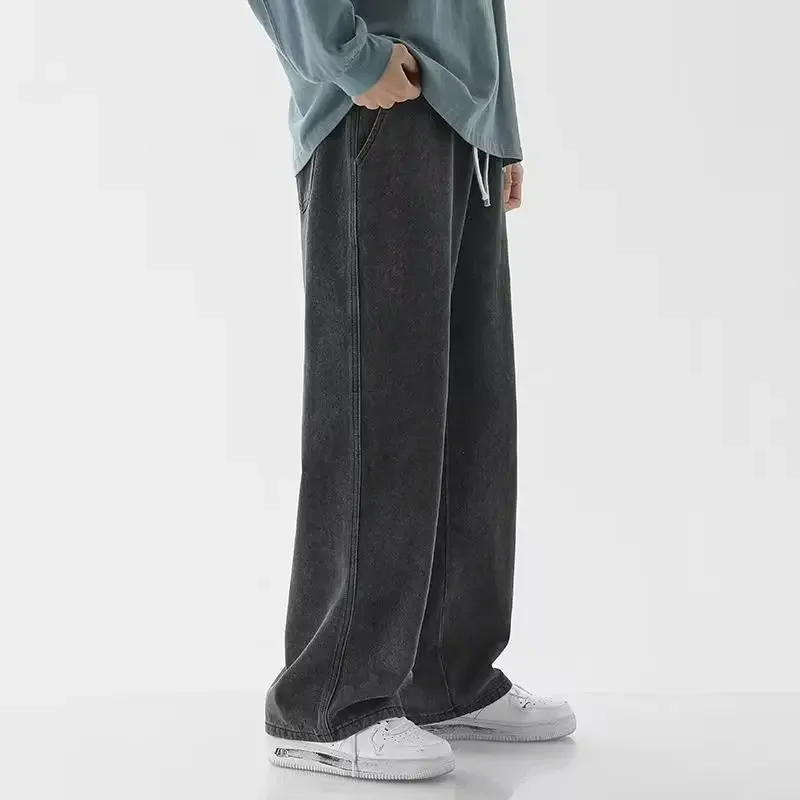 Spring Autumn New Men’s Jeans Japanese Vintage Elastic Waist Casual Straight-leg Pants Trendy Wide-leg Trousers Loose Fit