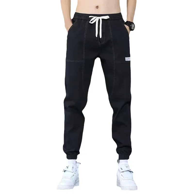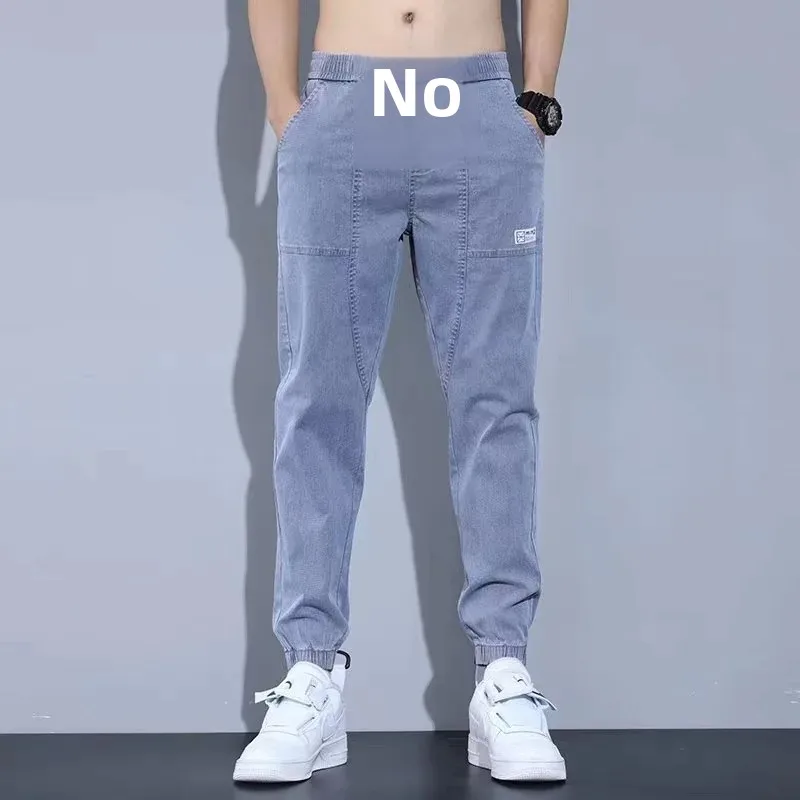 Summer Men’s Jeans Trendy Brand Workwear Harajuku Nine-point Elastic Waist Loose-fit Casual Pants Men’s Summer Trendy Jeans