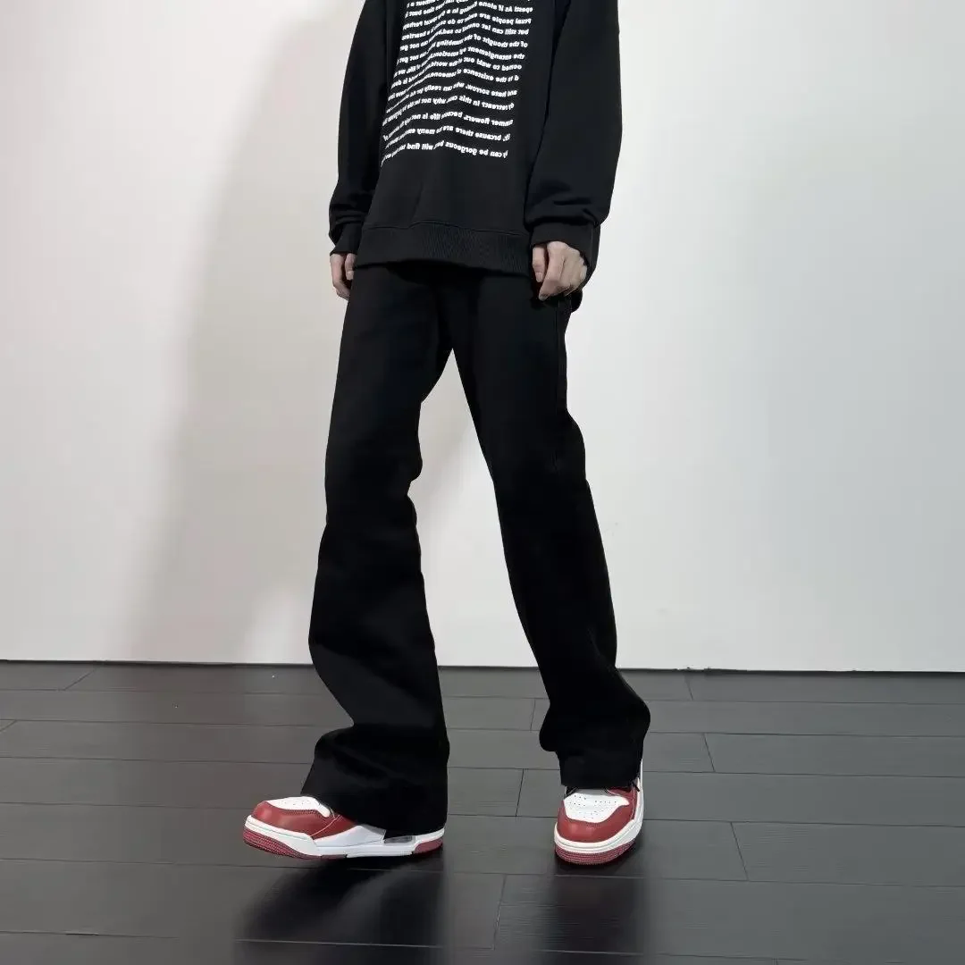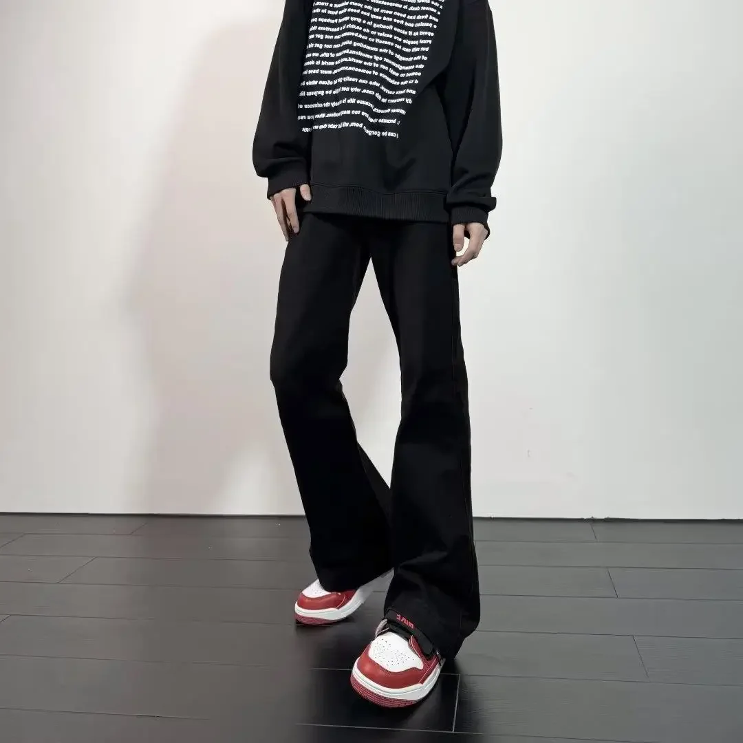 Trendy American Style Black Jeans Loose-Fit Straight-Leg Pants For Men Casual Hip Hop Style Micro Flared Long Pants