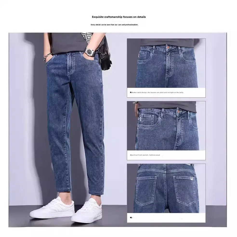 Trendy Jeans For Men Slim Fit Smooths Your Silhouette Casual Long Pants Summer 2024 New Style Slim Fit Denim Trousers