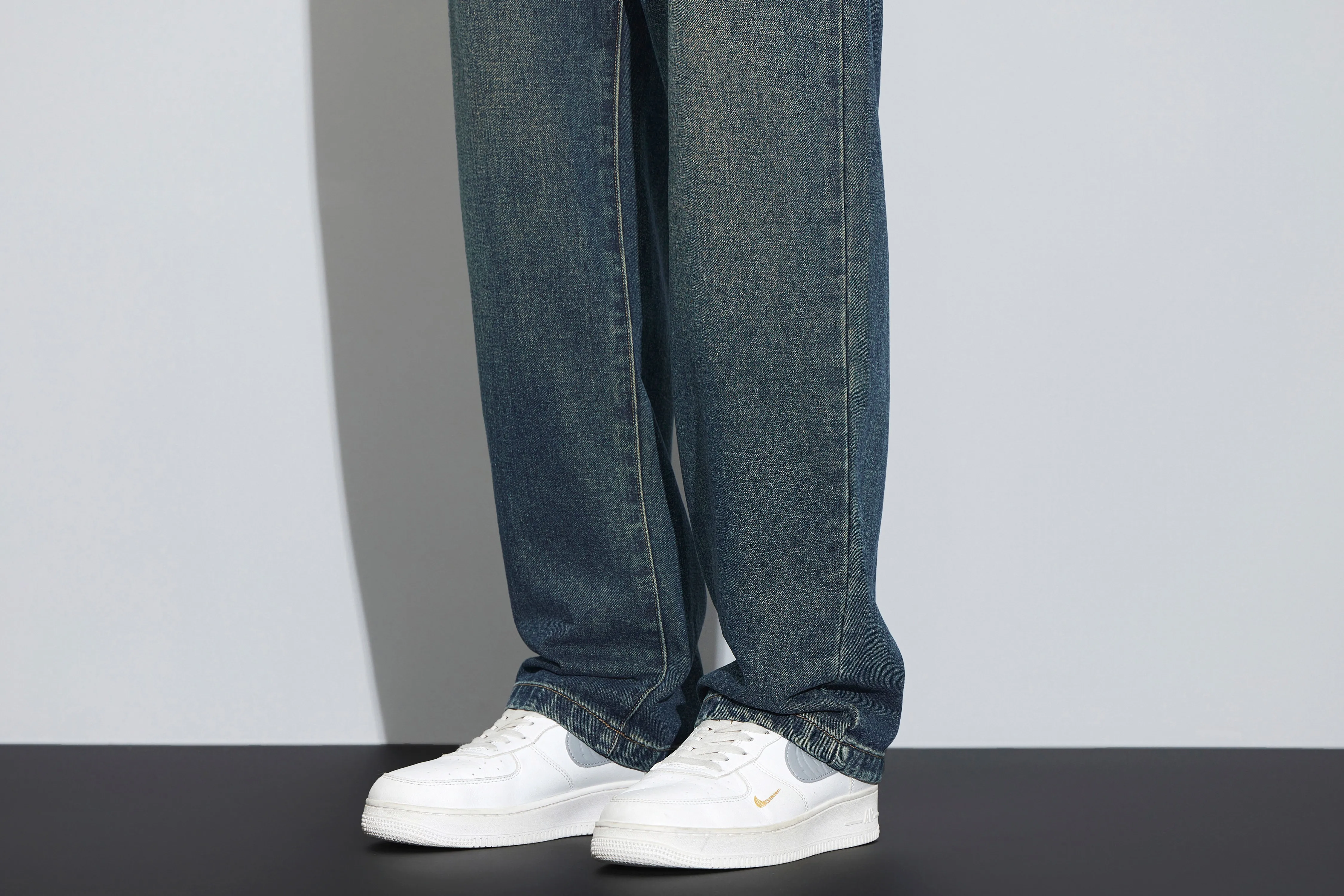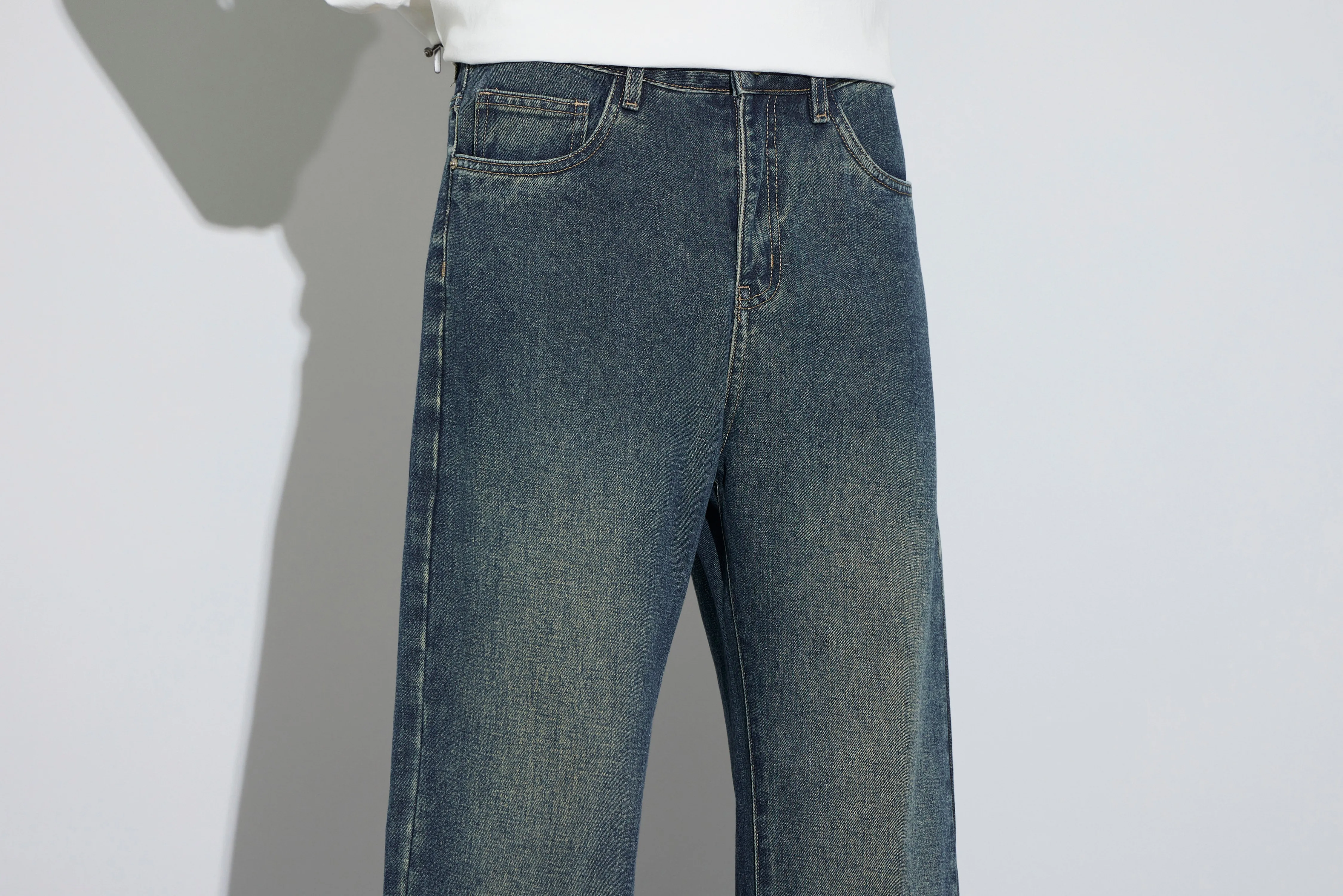 Unisex Relaxed Vintage Blue Jeans Curved Knife-Cut Wide Leg Trousers High Cotton Comfortable Fabric for Casual Everyday Outfits