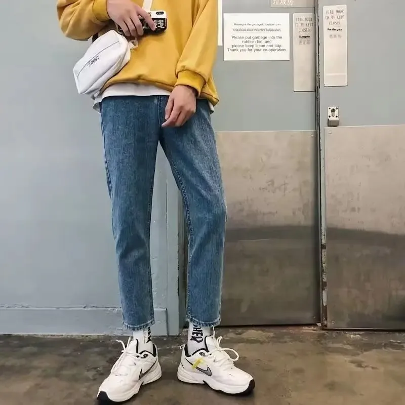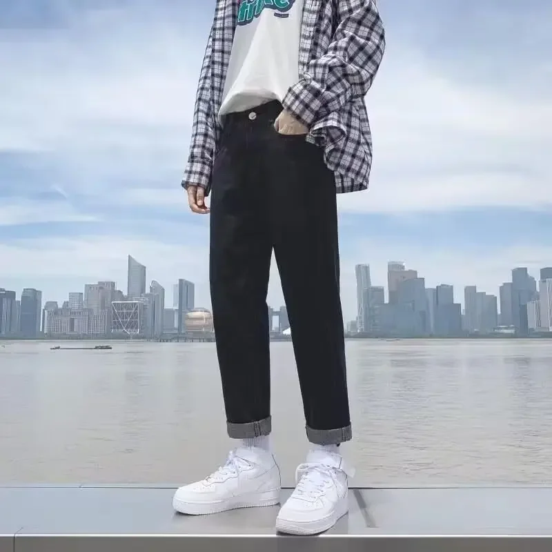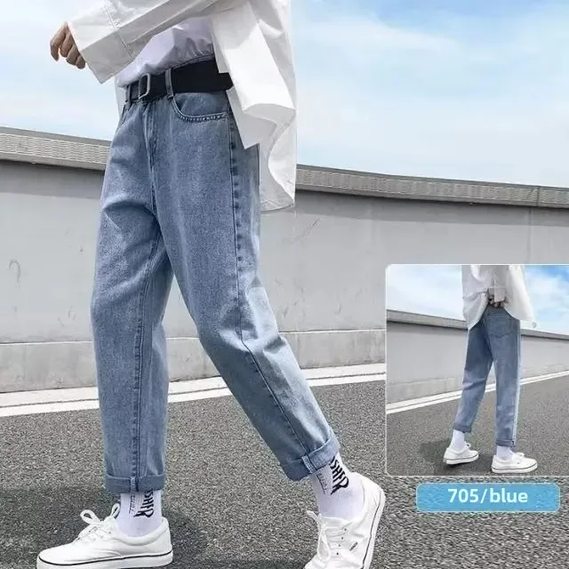 2024 Summer Men’s Jeans Loose-fit Korean Trendy Cropped Pants Harajuku Style Casual Workwear Trendy Brand Pants For Men