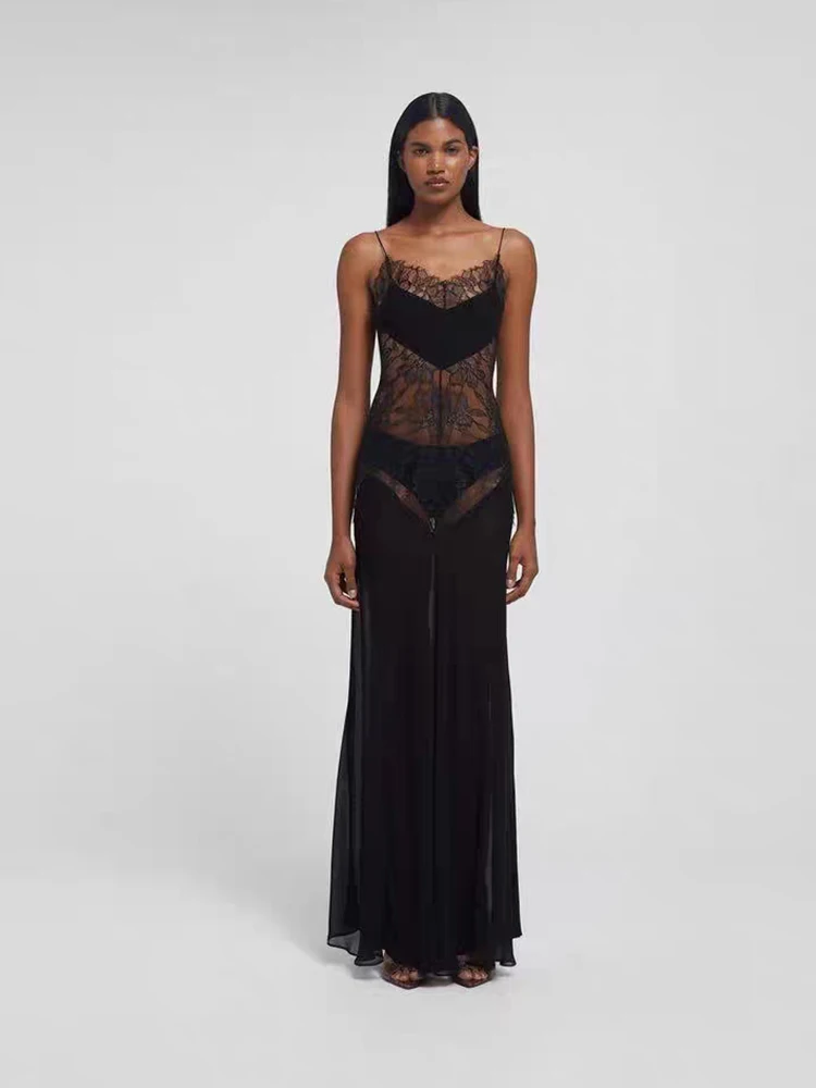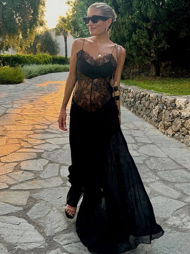 Weird Puss Lace Patchwork Women Dress Sexy Backless Sleeveless Summer Trend Vacation Sexy Skinny Elegant Clubwear Maxi Bodycon
