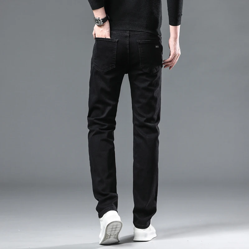 WTHINLEE Autumn Black Men Straight Jeans Business Casual Stretch Classic Denim Pants Regular Fit Comfortable Denim Trousers Male