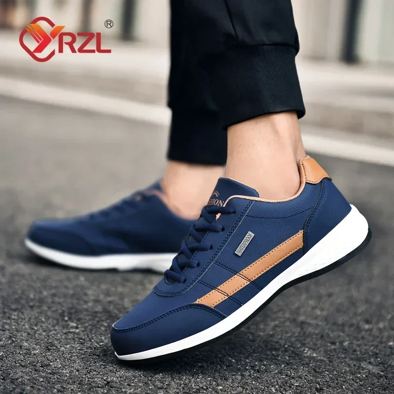 YRZL Men’s Waterproof Running Shoes Lightweight Non Slip Leather Sneakers Comfortable Spring Autumn Walking Shoes for Men