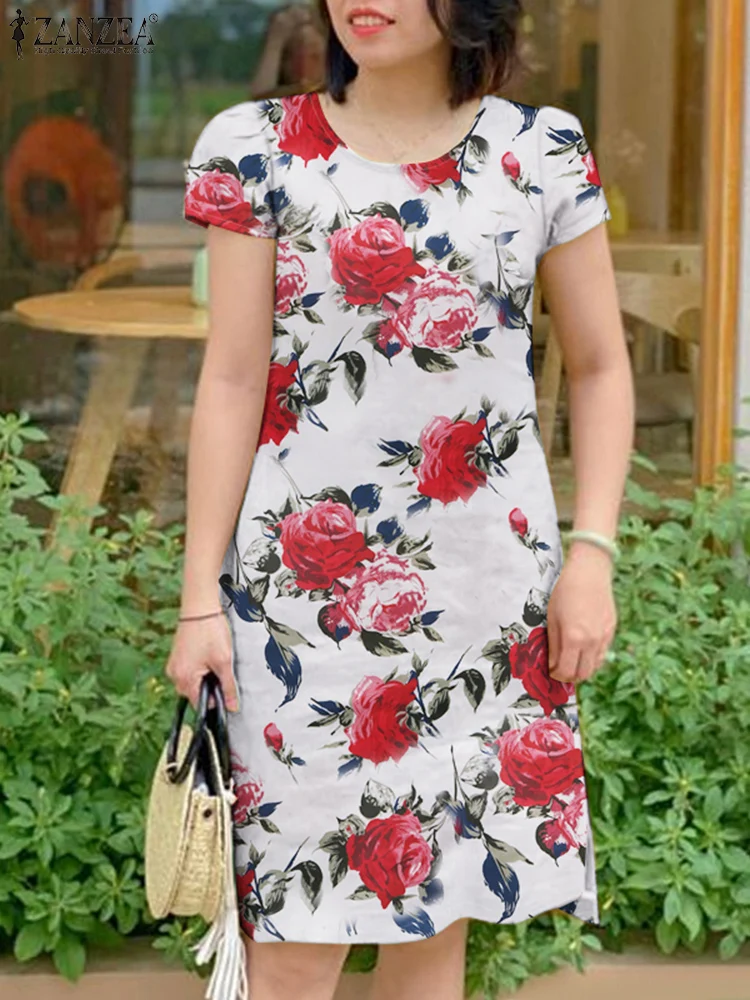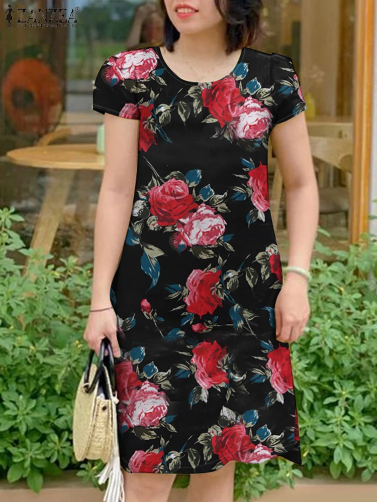 ZANZEA 2025 Summer Dress Women Bohemian Holiday Sundress Knee-length Dresses Casual Floral Printed Short Sleeve Beach Vestidos